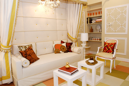 This month’s Celebrity Boudoir belongs to Tyra Banks. The special part about this boudoir, is that it’s actually her “dressing room” at work. Wouldn’t we all love to have such a place to get away to at work? It was designed by the very talented Ron Norsworthy. 1